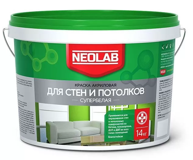 Акриловая супербелая краска ДЛЯ СТЕН И ПОТОЛКОВ влагост. ВД-АК-2180 3 кг (уп.4 шт.) NEOLAB купить в Вологде по низкой цене с доставкой