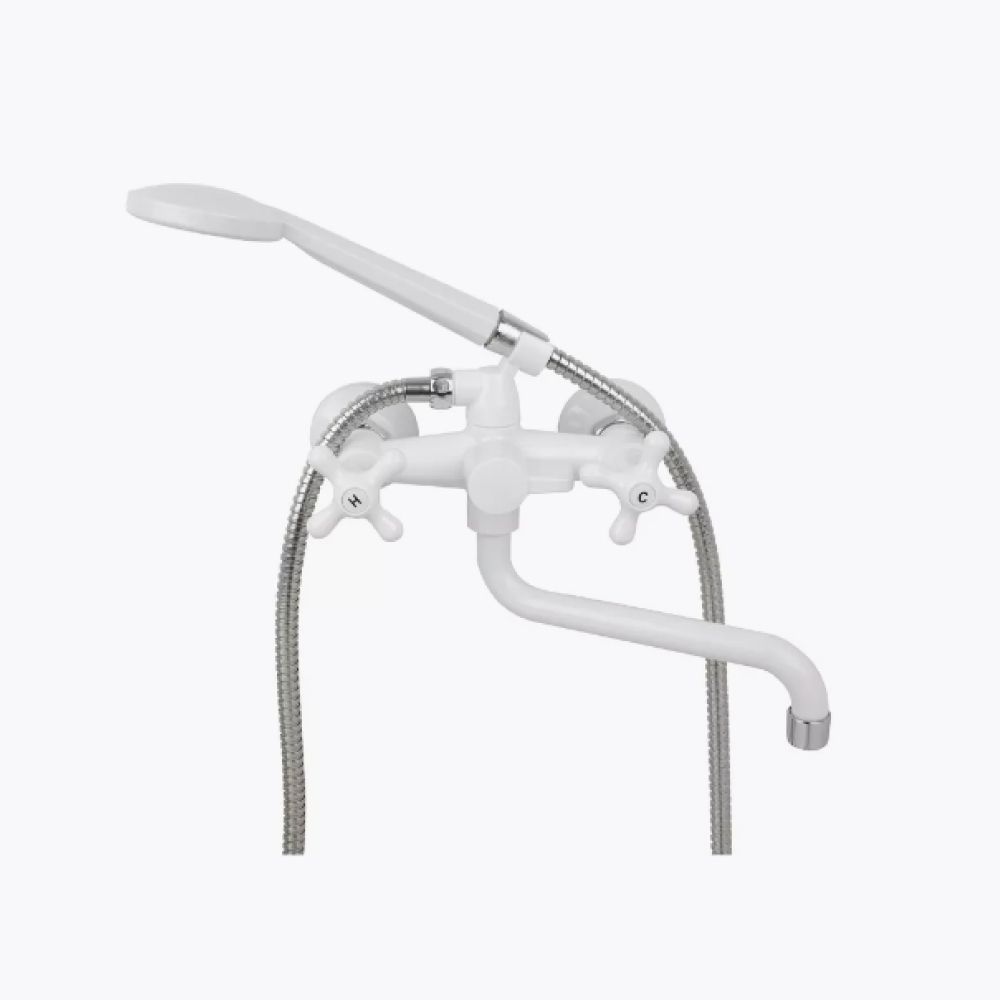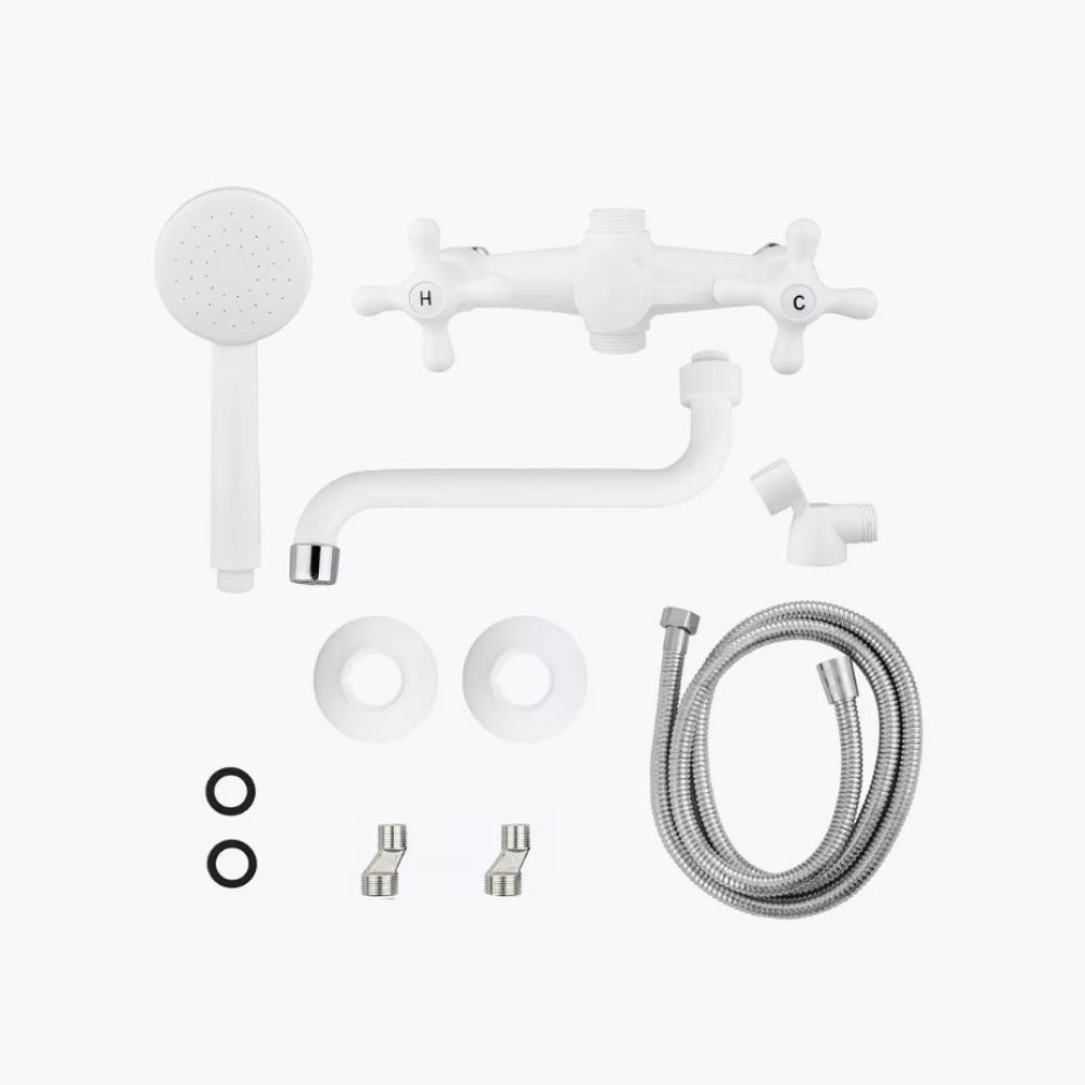 Смеситель для ванны и умывальника двухручковый белый/хром Potato Эверест B 22-3597 купить в Вологде по низкой цене с доставкой
