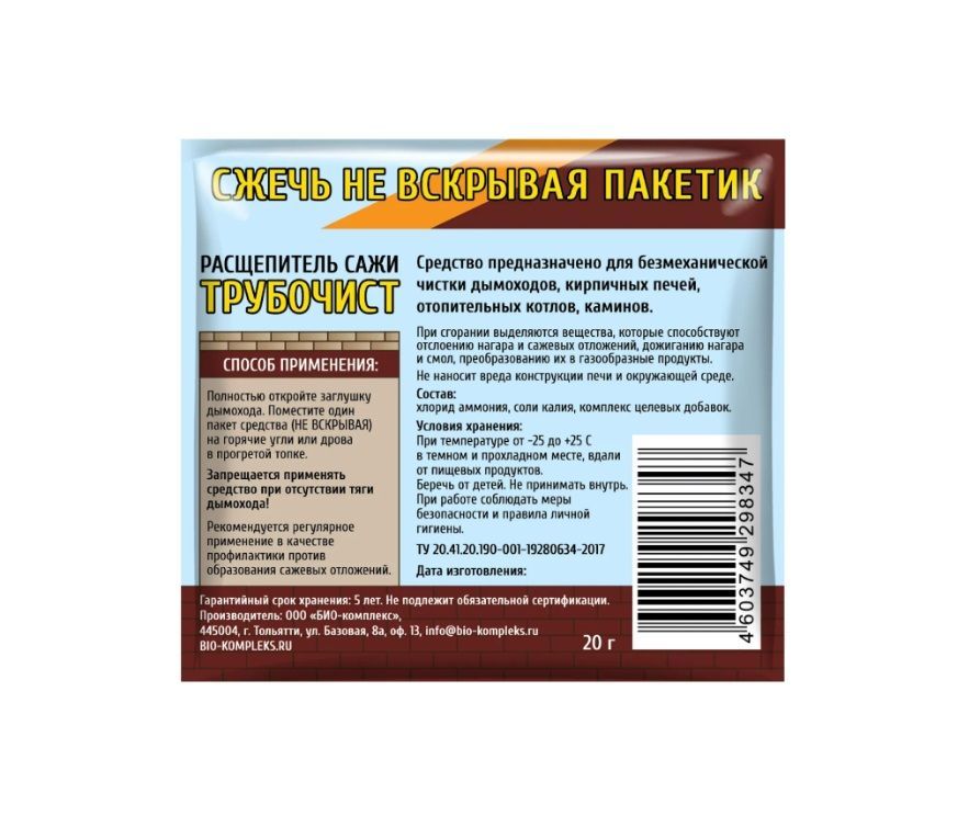 Средство Трубочист для чистки труб и дымоходов, устранения сажи и копоти, 100 г купить в Вологде по низкой цене с доставкой