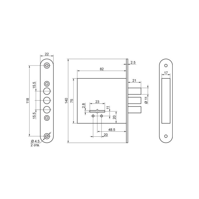 Бэксет (удаление ключевого отверстия),мм: 48,5